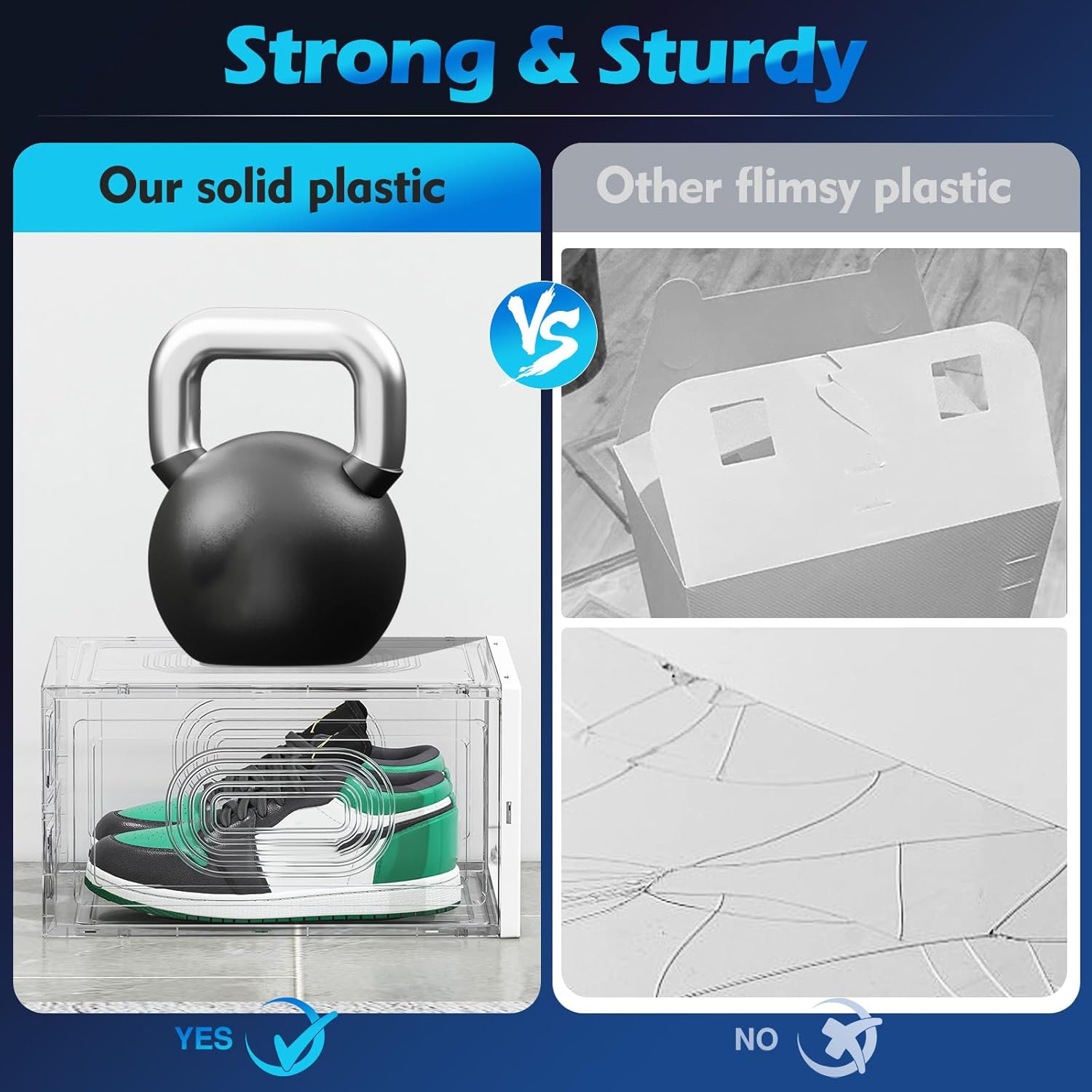 10 Pack Thicken Shoe Organizer Stackable,Upgraded Sturdy Shoe Storage Box with Magnetic Door,Shoe Containers For Sneaker Display,Hat Organizer,White