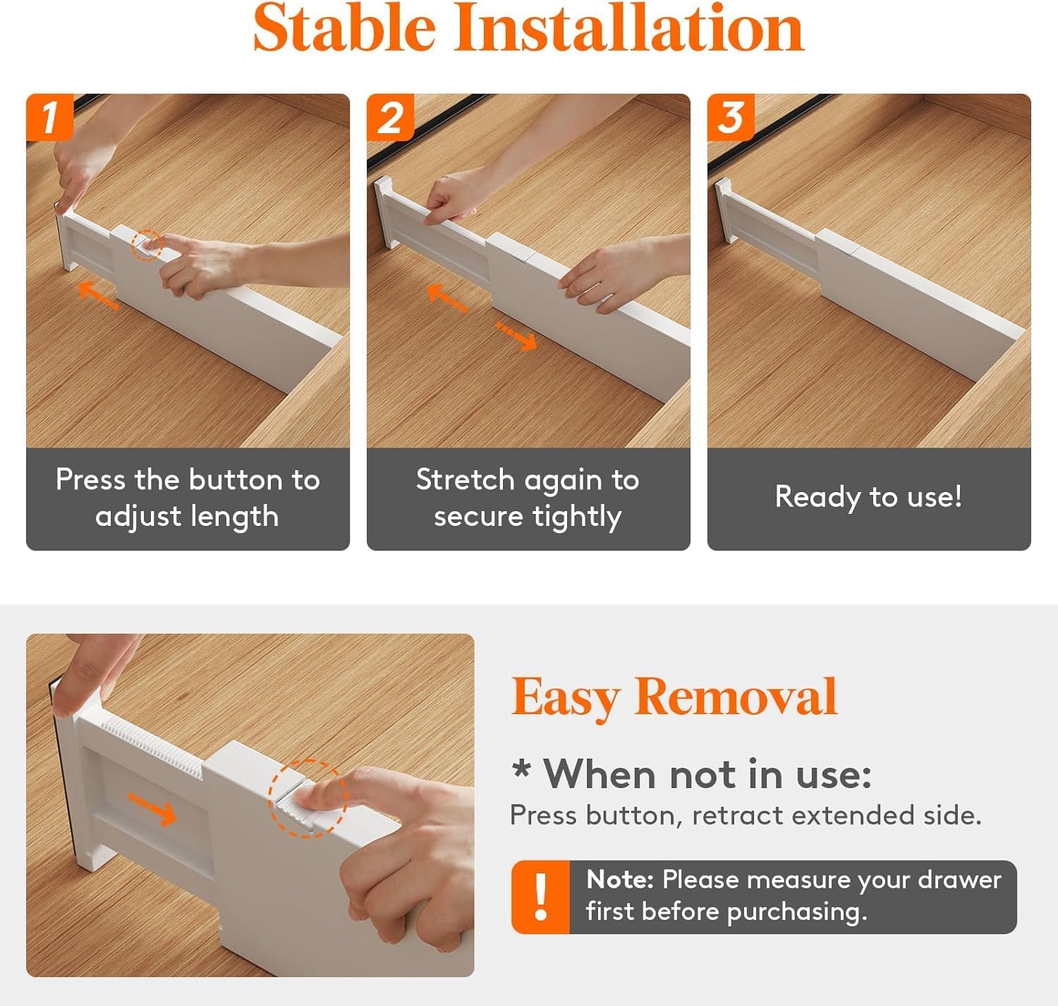 Lifewit 8 Pack Drawer Dividers 4" High,11-17" Adjustable Dresser Drawer Organizers for Clothes, Expandable Dresser Separators in Bedroom/Bathroom/Kitchen/Vanity/Office Organization and Storage, White