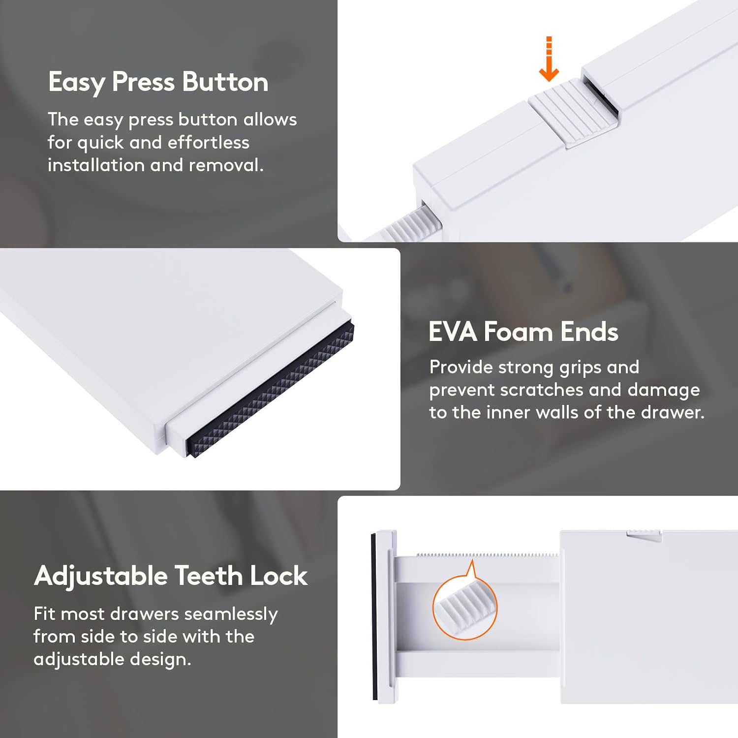 Fit most drawers seamlessly from side to side with the adjustable design.