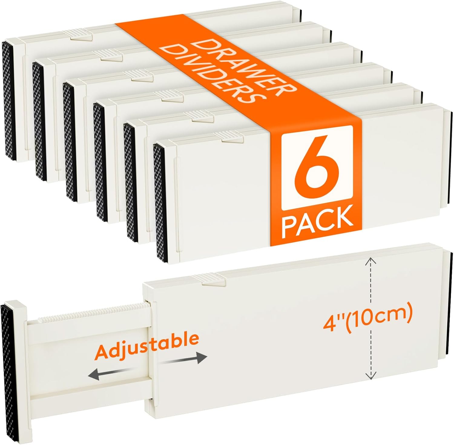 Lifewit 9 Pack Drawer Dividers 4" High, 11-17" Adjustable Drawer Organizers for Clothes, Expandable Dresser Separators in Bedroom/Bathroom/Kitchen/Fridge/Office Organization and Storage, White
