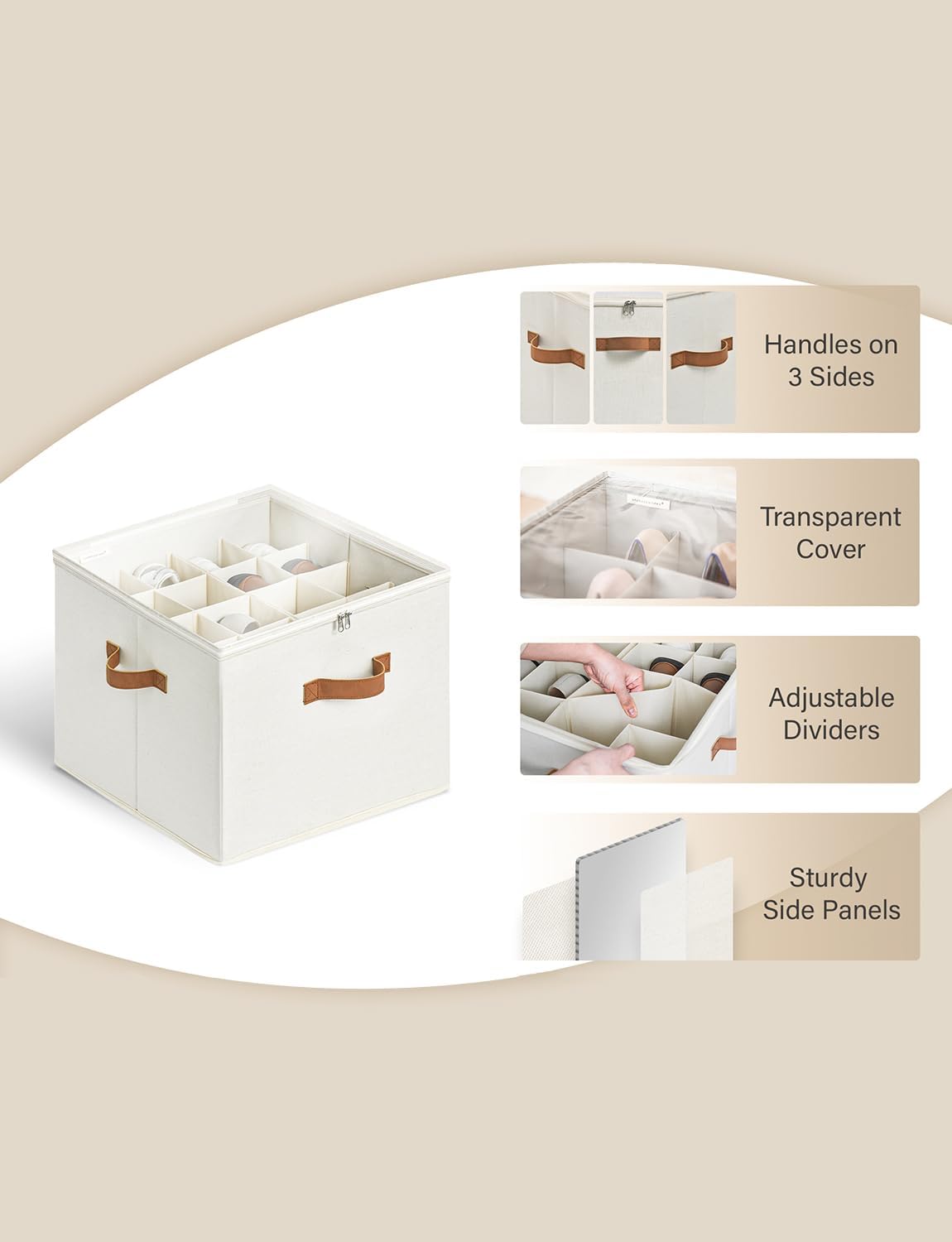 StorageWorks Shoe Organizer for Closet, Fits up to 16 Pairs, Shoe Cubby Storage Containers with Adjustable Dividers and Clear Cover, Beige