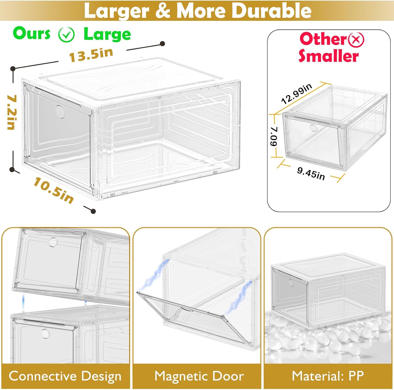 Thicken & Sturdy Clear Shoe Storage Organizer with Magnetic Door, Stackable Boxes for Closet, Foldable Space-Saving Shoe Rack for Sneaker Boot Container, Plastic Shoe Cabinet Shoe Box 6 Pack, White