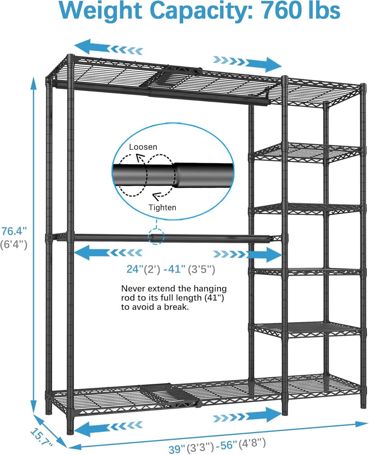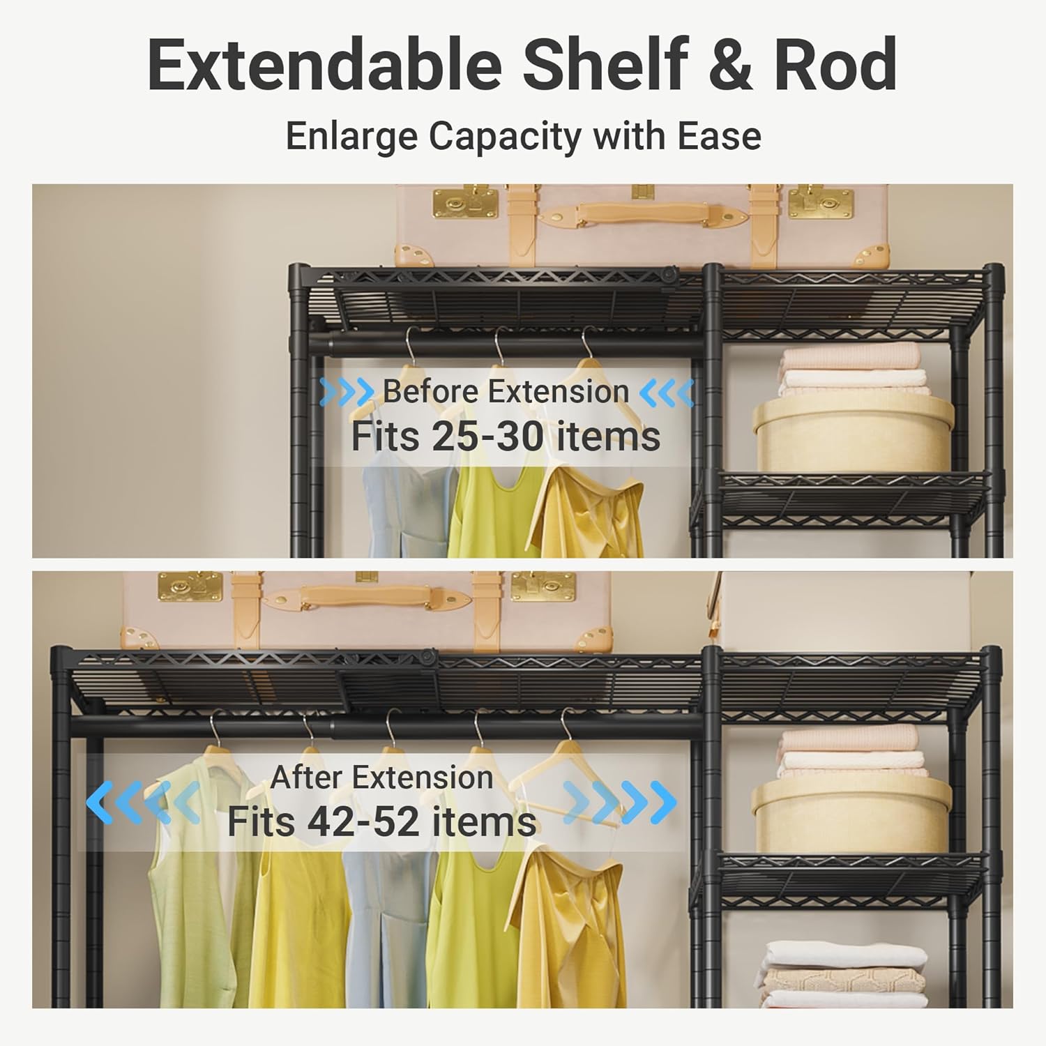 VIPEK X2 Expandable Reach-in Closet Racks Adjustable from 3'3" to 4'8" Portable Open Walk-in Closet Rack System with Flexible Shelves and Hanger Rods Clothing Rack for Hanging Clothes, Black