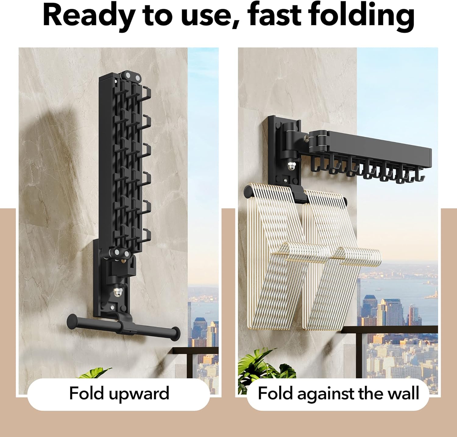 HEILAIYI Wall Mounted Clothes Hanger,Clothes Drying Rack,Laundry Drying Rack,Clothes Rack Wall Mount,Drying Rack Clothing,Laundry Rack,Folding,Retractable,Collapsible,can Fold Upward & Left & Right